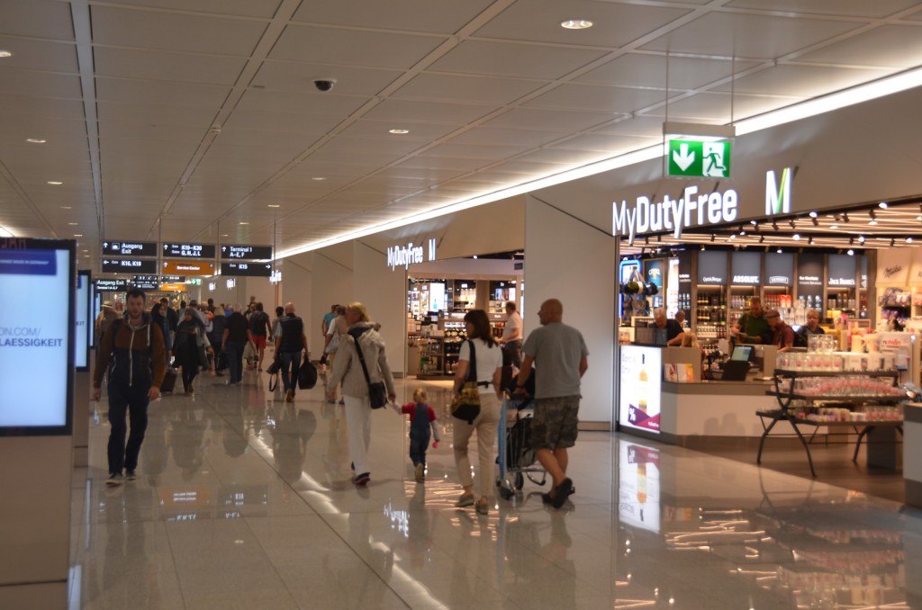 We ended up having some extra time with our 3 hour connection on the two separate tickets. We took in a pretzel and a Hell beer in terminal G. It wouldn’t be the Munich airport without an awesome car in the departure hall.