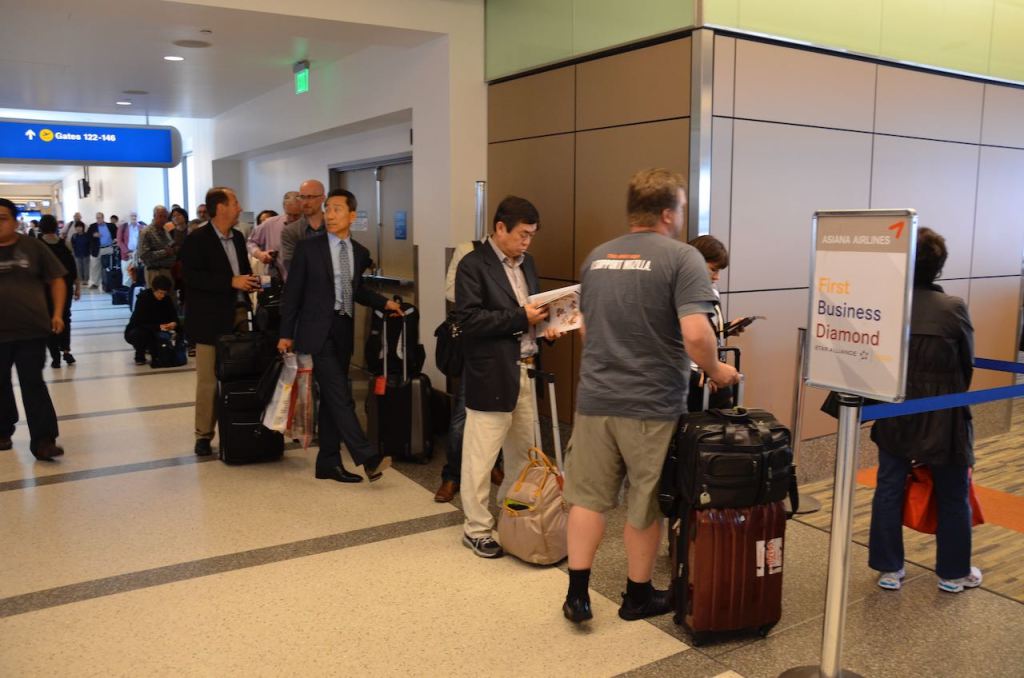 We found the First Class line, which was the same as the Business and Asiana Diamond Tier line. Unfortunately it snaked down the hall away from the gate. There were about 50 of us in this line waiting to board. Those that have previously complained about too many Top Tier Frequent Flyers would have the same complaint here. It was a little deflating.
