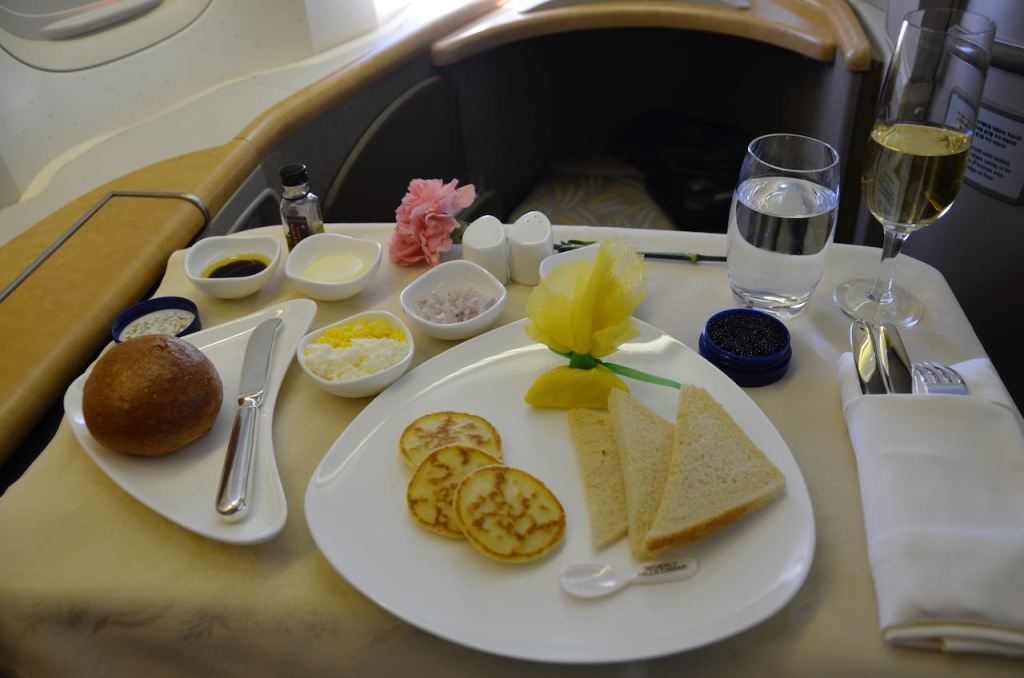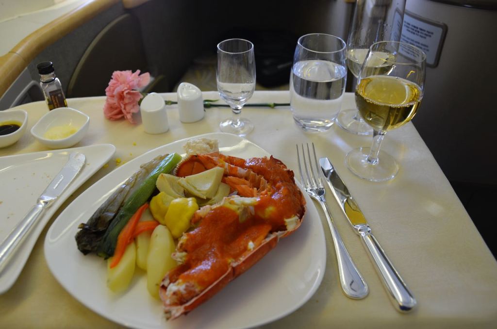 I started with ordering one appetizer (the caviar) to accompany the grilled lobster. The flight attendant encouraged me to try more, so I did.