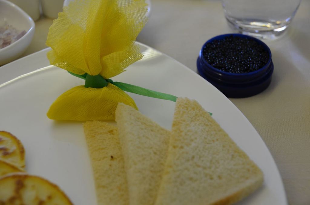I did ask for a shot of Vodka to go with the caviar. I was brought a small dish of butter, which highlighted some of the amusing language issues that occurred. However, this was cleared up with a smile and before I knew it, I was tucking into an individual sealed container of caviar from Beverly Hills Caviar with the traditional garnishes.