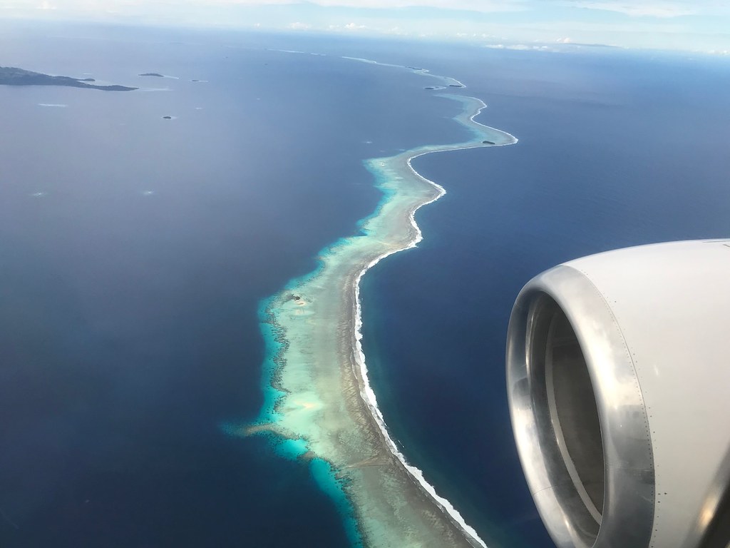 There are dozens of trip reports about the UA Island Hopper. It is a famed and mythical route. The reality is most of these views are fleeting and quick. It isn’t like the Maldives where your resort propellor flight passes over thousands of lagoons. Instead, thanks to greater distances, the lagoons and coral reefs are quite a ways apart.