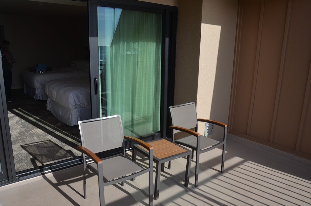 The seating area of the room consisted of two occassional chairs and a table. While it’s not the most comfortable, we didn’t spend any time seated inside the room, thanks to having access to an excellent deck just steps away.