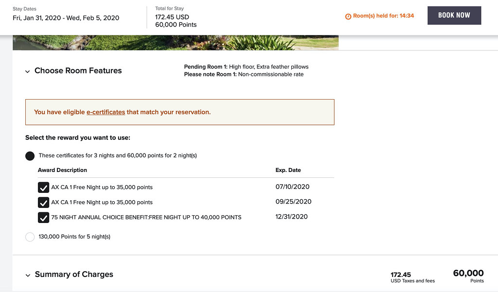 - One Certificate from an additional free night award, as a result of meeting Titanium status after 75 nights in a year,