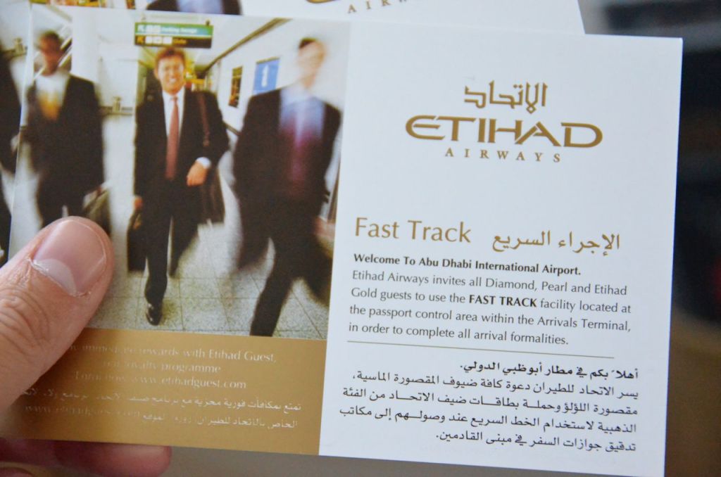 We were also given United Arab Emirates Ethiad Fast Track Cards for immigration.