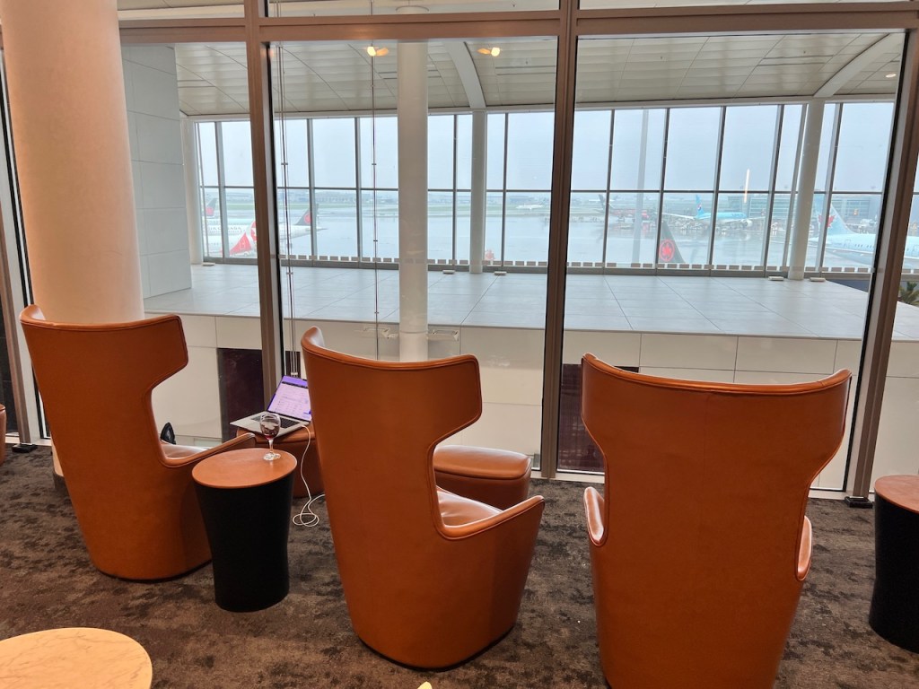 Instead, I’ve always taken a seat on the shorter white lounge chairs. The strategy has always been to wait for a brown highback leather chair to open up, then leap frog your way up to a better lounge chair. Having said that, I’ve never actually stayed here long enough for that to happen.