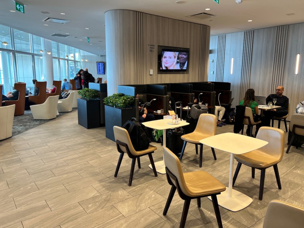 Moving towards the back of the lounge, there is a triangle shaped area that offers a combination of more table and chairs, along with office loungers. Given that the lounge is not too large, you’ll come to the end of the lounge space pretty quickly.