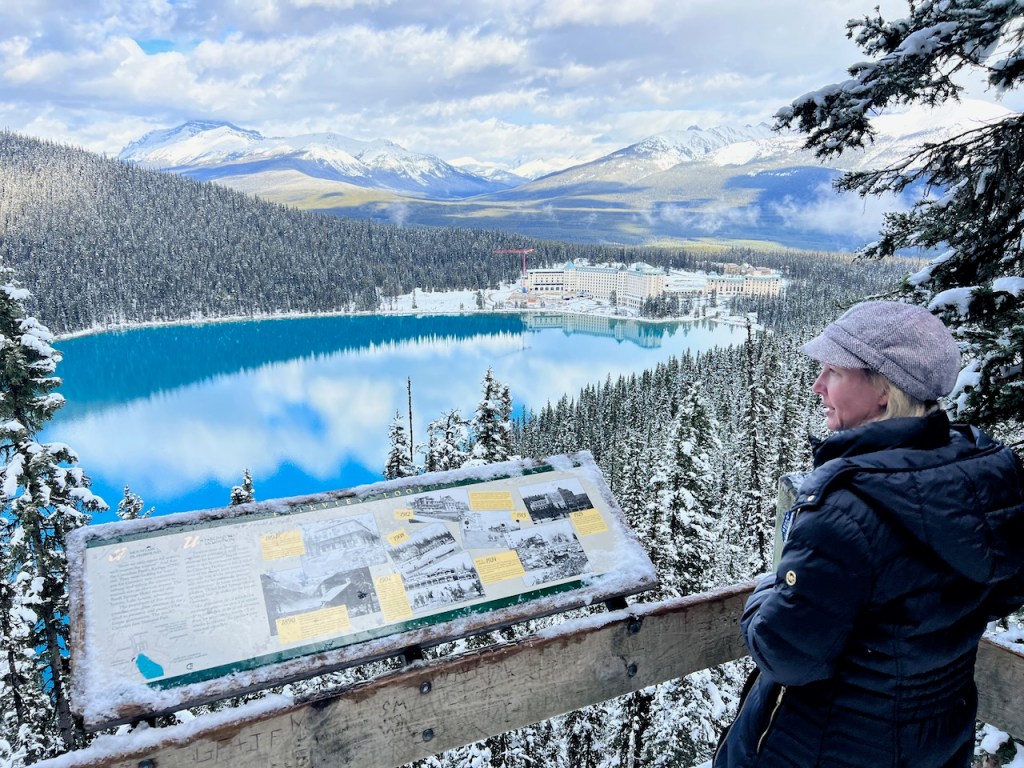 On the day of our walk, we arrived into town and checked ourselves into the Fairmont Château Lake Louise. It was not recommended by Banff National Parks administration (Parks Canada) to walk many trails in the winter for reasons of slipperiness, avalanche debris and other hazards. I was interested to see how easy this experience would be in our early winter weather.