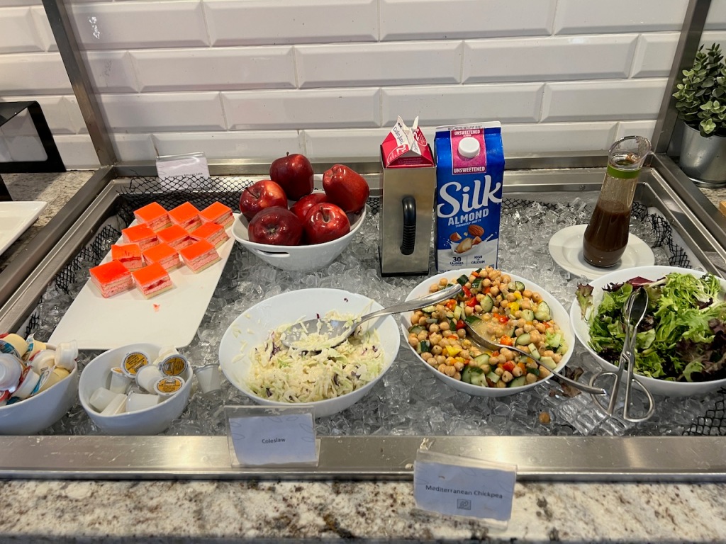 The Plaza Premium Lounge networks are normally pretty generous on food. On today’s visit, they had a substantial offering that is typically more than the nearby Air Canada Maple Leaf Lounge, between regular meal times.