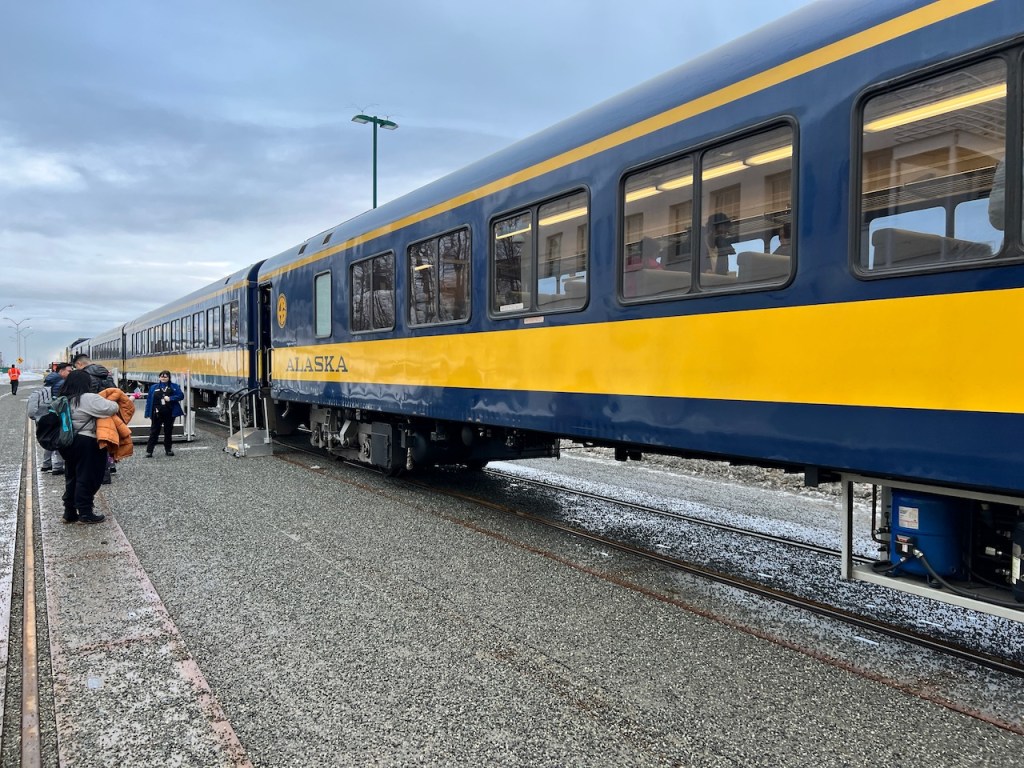 When it came time to board the Alaska Railroad Aurora Winter train, it was pretty much a free-for-all. We were given directions to our assigned car. With the conventional “All Aboard!” announcement from the conductor (still entertaining and fun), we headed outside to board our adventure class train.
