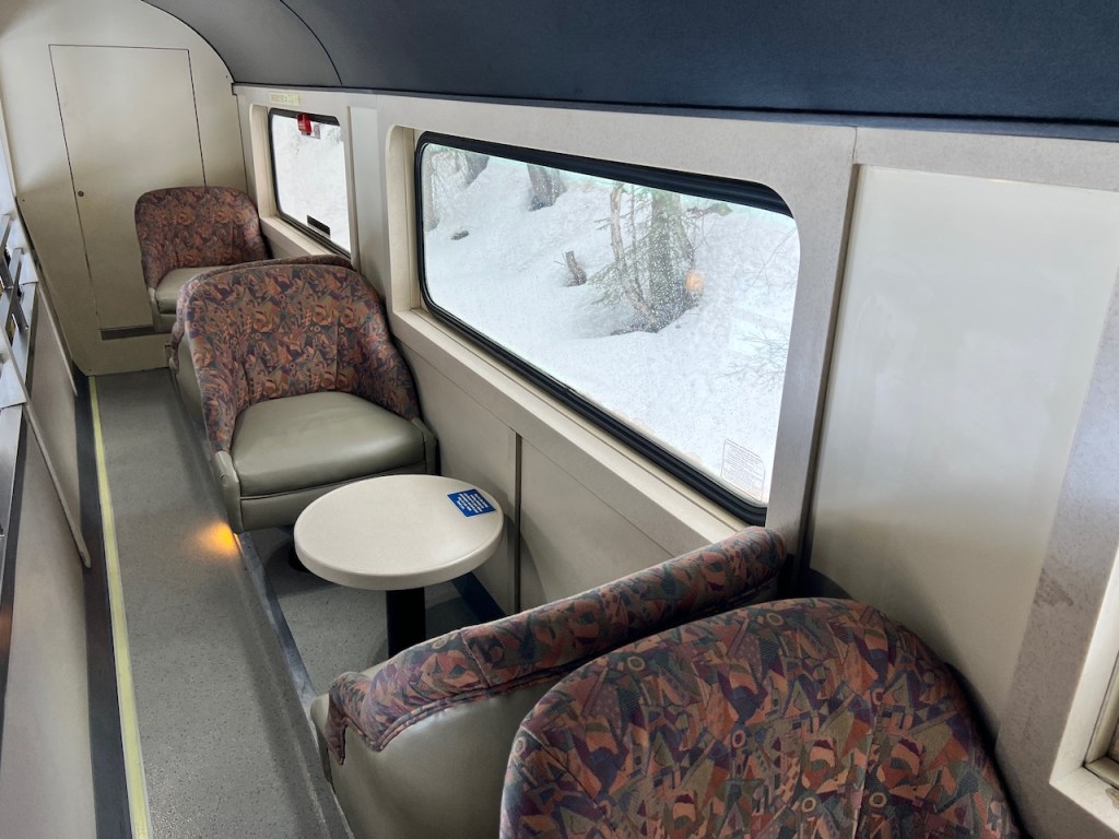 The Alaska Railroad runs services on a year-round basis. Since our visit was during the winter time we rode the Alaska Railroad Aurora Winter train. The Alaska Railroad Aurora Winter train offers “Adventure Class” services and runs on a reduced schedule.