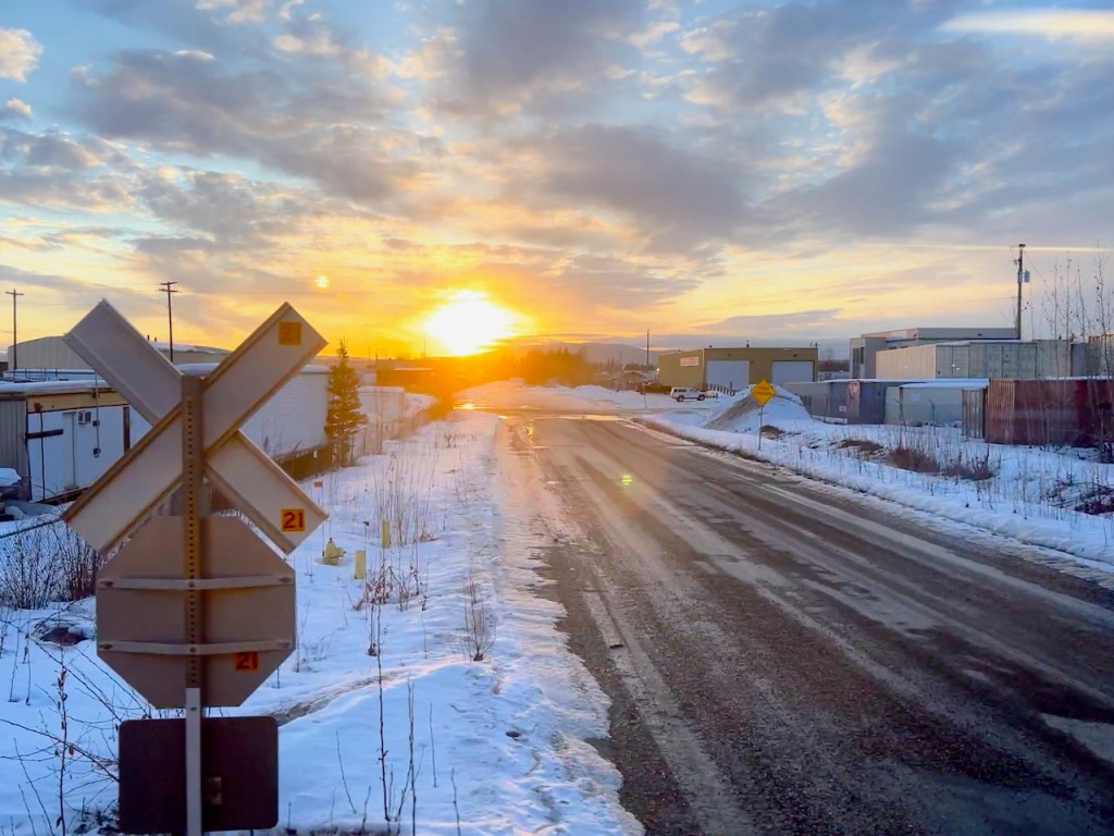 As we approached 8 o’clock in the evening, some eleven and half hours after we started, we approached Alaska Railroad Fairbanks Train Station. From the train, we were treated to a beautiful northern sunset as we approached the train yards.