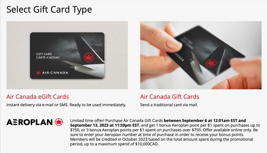 - This Air Canada Gift Card Aeroplan bonus points offer (the “Offer”) is open to Aeroplan members who are in good standing.