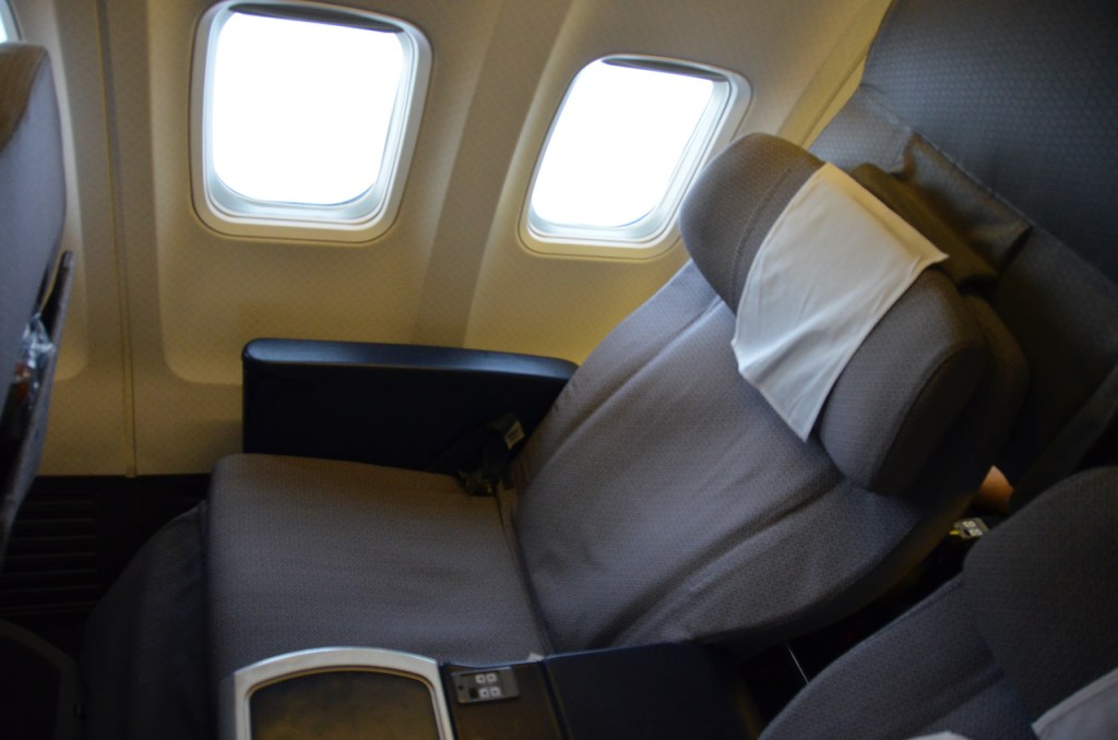 When I booked the 2 seats left remaining within award inventory, I was a bit surprised to discovered that they were in fact the only two seat remaining in this class of cabin for this flight 3 months in advance. I went to select seats and we didn’t get the opportunity to sit next to each other. As a result, we ended up in the middle one behind each other for this 45 minute flight.