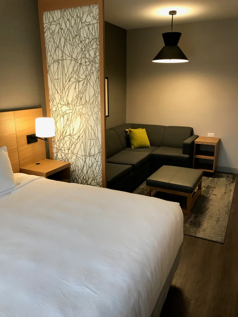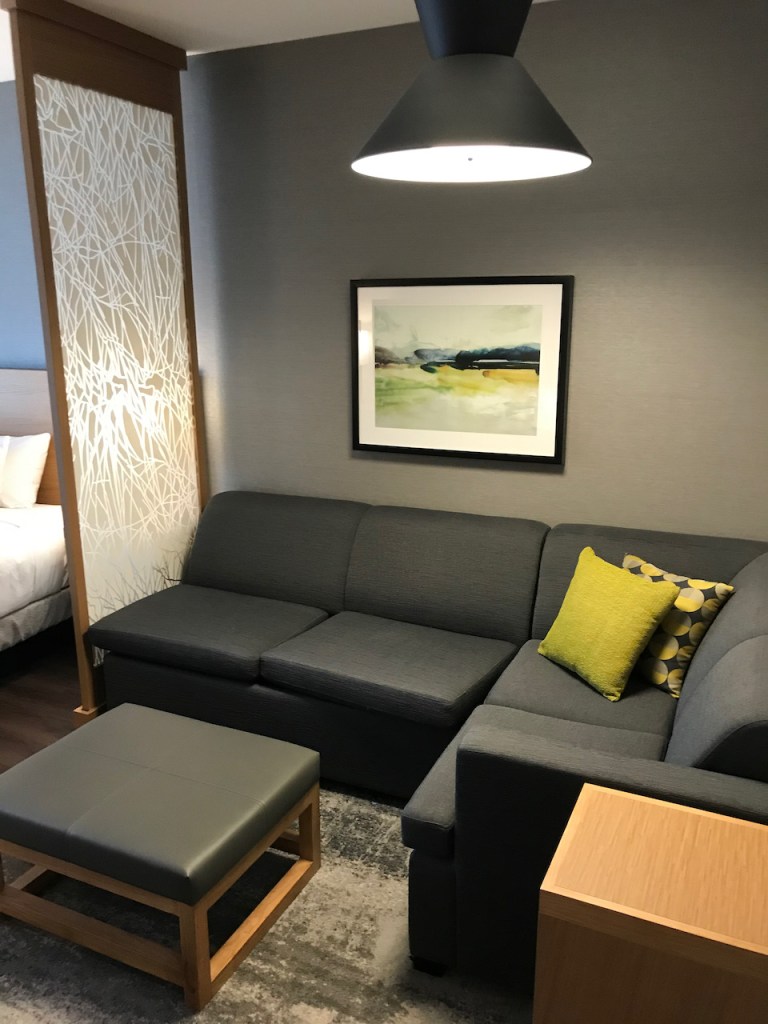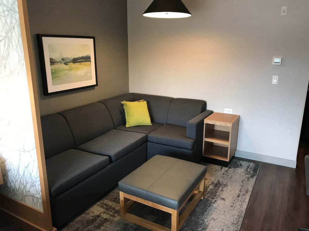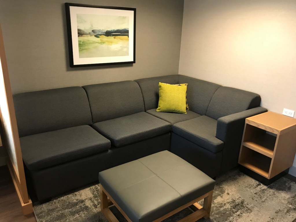 The Hyatt Place has branded it’s couch and living space as “The Cozy Corner”. Indeed, it was a more inviting space than the usual lounger or chair found in any hotel room in this competitive class. The Cozy Corner embedded a sofa bed, along with a coffee table that could also double as a chair. The couch had the usual sofa bed firmness to it while you were sitting on it. Although not a suite, it was a more comfortable space than you’d typically get in a standard hotel room.