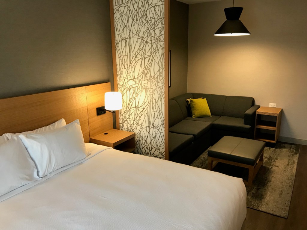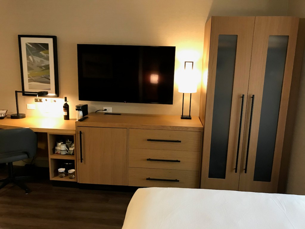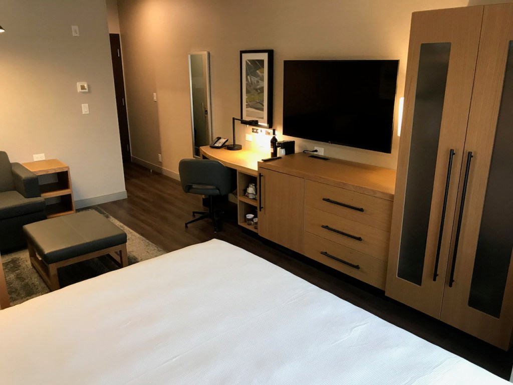 The room featured a king size bed. Hyatt Place hasn’t branded it’s beds like the business hotels like the Sheraton Sweet Sleeper bed or the Westin Heavenly Bed. Despite the bed being brand new, I found it a little soft for my firm liking. It was comfortable for relaxing, and I probably would have gotten used to it over time.