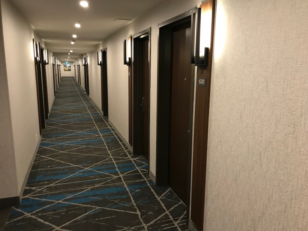 I led myself up to the room. I was assigned #631, which was mid corridor. Being a new hotel, everything was in modern colours and design.