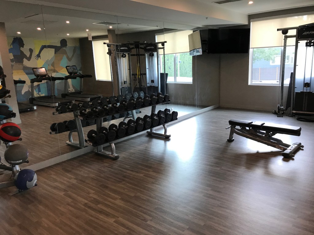 The hotel offers a gym. During my stay, the gym access was by appointment through the front desk as a result of the pandemic. The gym offered modern Lifecycle treadmills and a proper free weight area for one. Another plus was that the gym was on the ground floor and had daylight windows. Unlike some gyms in basements, this one had terrific light.