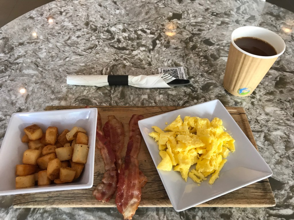 While this miniature version of the lounge offers a limited amount of snacks, the food has always been reasonable. The food at the Plaza Premium Vancouver is typically full serve, and you can verbally order a plate which will be presented or delivered, dependent on the method of operations. Since I visited and was traveling during the COVID-19 pandemic, on my visit, the food was delivered to table after I had ordered it.