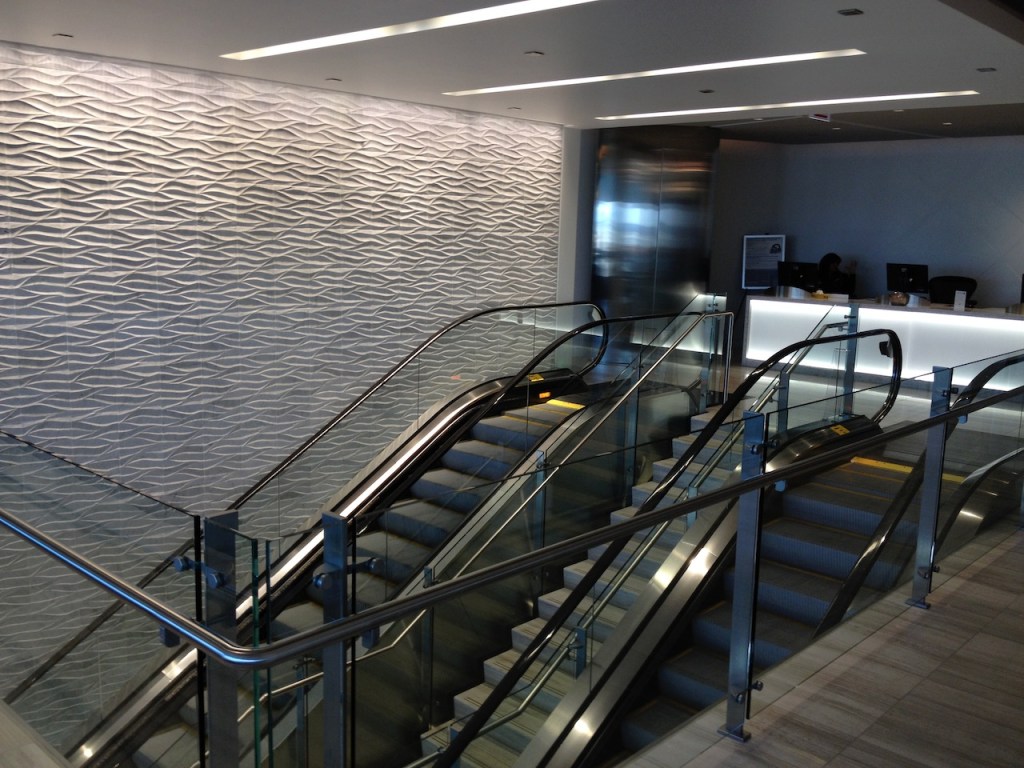 The main access point is via escalators near Gate B7 on the B Concourse. Given it’s central location, it’s pretty easy to locate.