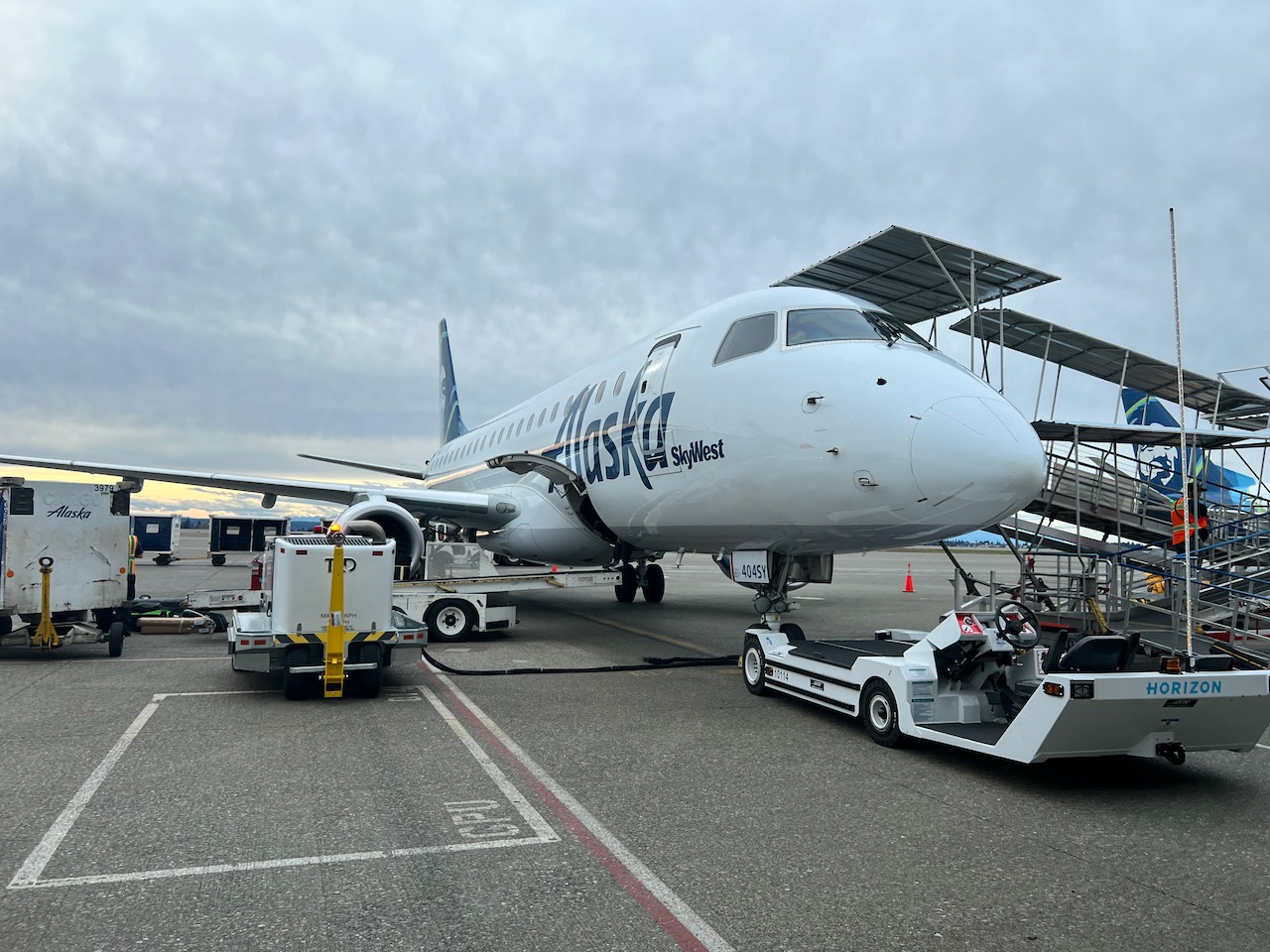 Alaska Airlines offers connecting service from Bellingham International Airport to its hub in Seattle Tacoma International Airport. Our first flight today was on Alaska Airlines Embraer 175 aircraft, operated by Skywest...