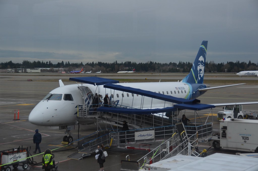 Alaska Airlines offers connecting service from Bellingham International Airport to its hub in Seattle Tacoma International Airport Our initial flight today was on Alaska Airlines Embraer 175 aircraft, operated by Skywest...